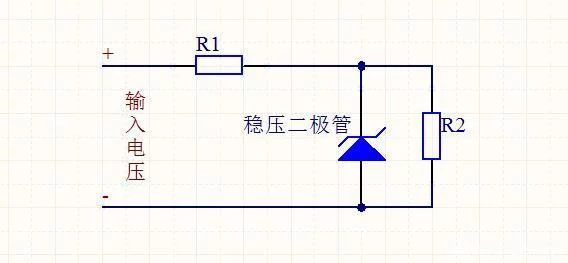 为了便于大家的理解,专门画了一个简单的稳压二极管的应用电路,电阻R1的作用就是分压,当电路中电流大小发生变化时,由于稳压二极管在反向击穿区电压变化范围很小,可以认为不变,所以当负载(R2)与稳压管并联时,电压就保持不变,所以它能够保持负载电压稳定。